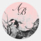 SPRING BIRD AND FLOWER TREE MONOGRAM Pink Fuchsia Classic Round Sticker