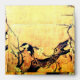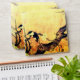 Elegant ,whimsical ,colorful floral design with a cute spring bird on the branches of a flowering tree,blooms,blossoms in yellow ,brown,white colors created with digital re-elaboration of an antique oriental miniature.