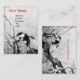 Elegant ,whimsical and colorful floral design with a cute spring bird on the branches of a flowering tree,blooms,blossoms in black,white, grey colors created with digital rielaboration of an antique oriental miniature.