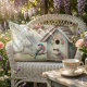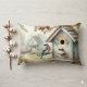 Spring Birdhouse With Pastel Flowers And Bird Lumbar Pillow