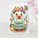 This card features a fluffy white baby bird with wide eyes and a bright smile, wearing a flower crown of pink, yellow, and lavender blooms with leafy green accents, and a soft blush on its cheeks that suggests a sweet, friendly warmth 🌷. It holds a mint-green sign at the center, with the main message printed in darker green lettering for easy reading. Tucked beside it, a small yellow chick in a simple blue hat peeks out, its close, matching grin giving the pair a cozy, companionable feel 🐇. Above them, a round brown bird with wings spread floats like a gentle guardian, adding a light, airy touch to the scene. The background is a pale sky-blue field with a soft, diffused glow that keeps everything calm and springlike. Decorative green sprigs with pink buds and a few open blossoms frame the group along the sides, guiding your eye inward. The characters and foliage are outlined with crisp white edging that creates a layered, cut-out look against the blue backdrop. The mint-green sign sits in front of the white bird’s belly, centered, with the dark green text standing out clearly.
