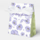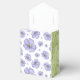 This favor box is blooming with delicate purple flowers, on a white background. The side panels are light green with dark green foliage. The text can be customized.