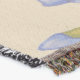 A quality printed throw has its advantages. This is a much finer weave throw than its loopier cousins, and though lighter, it is worth the investment for custom room accessorizing. The back is much prettier than the typical brown, and the fringe on the long sides very vivid, the selvage nicely done. Before photographing, I washed the throw in cold water, delicate, with a thicker woven throw the same size. On tumble dry low, this throw was dry in half the time as the other. This is a very practical quality if you use throws for furniture covers or to wrap up in frequently. The sleekness of the fabric makes it a great layer for accenting or protecting without the feeling of sitting on too much stuff. Perfect for napping or when you feel a light chill coming on. The color printing is beautiful and on this fabric, matched the design and color of my Photoshop image. This is an advantage for blending room fabrics and colors. The fringe on the short sides prints the colors from the design image and therefore varies from the side fringe. I streaked a white fractal line through the plaid pattern to give the illusion of weaving. This printed as crisp as an illusory thread, and put some white in the short side fringe, showing another advantage of print vs loomed- for artistic purposes, line lines, detail, and color integrity can be planned and preserved. My loomed throws have color limitations and more of a needlepoint texture. Print throws reproduce an exact image. The throw felt a little stiff straight out of the package, but this went away in the first delicate wash. Of course I searched the wash water for ink or bleeding and there was none.
