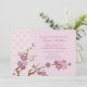 A lovely pink spring branch, featured against a white lattice and pink background. Perfect for a baby shower, bridal shower, as a luncheon invitation and more. Want to save money? Print this design on the basic, square corner paper.