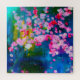 Spring Blossoms Mist Fine Art Puzzle - Fine Art by Jodi L. Lopez features blossoms in shades of pink on a blue, green, and yellow background. Abstract art puzzle. Great gift idea for housewarming, wedding, or birthday! Extra large puzzle for extra fun! Frame it when finished for beautiful wall art!
