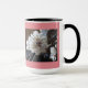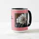 15 OZ. mug with beautiful spring blossom that was in a vase and forced in February, which is very early in the high dessert of Eastern Oregon. Pink background and Sumpter Valley Engineer's Gallery on the other side. This mug is used in the J Bar B Studio of Sumpter Valley Engineer's Gallery, and the trees that the blossom is from grow in the yard of the studio. Photograph by Cynthia Mayhall Christy. Please customize color and text to fit your preferences.