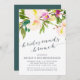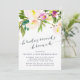 Elegant and modern floral bridesmaids brunch invitation features a bouquet of ethereal pastel watercolor flowers in shades cream and blush pink, with lush green botanical accents. Personalize with your bridesmaid brunch details in elegant midnight blue typography accented with handwritten style calligraphy. Cards reverse to solid jasper green.