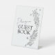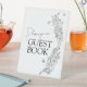 Stylized spring floral line art please sign our guest book table sign. Simple line art featuring, spring blossom, tendrils and butterflies along the side. A simple monotone black and white design to personalize with your words if required. Matching signs and other wedding items and color options are available and or can be created on request. © Original hand drawing and design by Sarah Trett for www.mylittleedenweddings.com on Zazzle.