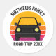 Cool custom road trip stickers for spring break or summer vacation with your family or friends. Personalize with your last name or group above the retro sunset and car silhouette. Perfect for a trip to a cottage or across the country. Drive off into the sunset.