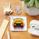 Cool custom road trip keychain for spring break or summer vacation with your family or friends. Personalize with your last name or group above the retro sunset and car silhouette. Perfect keepsake souvenir for a trip to a cottage or across the country. Drive off into the sunset.