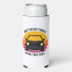 Cool custom road trip seltzer can cooler for spring break or summer vacation with your family or friends. Personalize with your last name or group above the retro sunset and car silhouette. Perfect keepsake souvenir for a trip to a cottage or across the country. Drive off into the sunset with this shirt.
