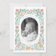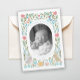 Hand-drawn flowers and leaf border with birds, snails and bunnies, over custom color. Add more text or photos to the back if desired. Also available in foil.
