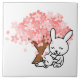 A pair of cute white bunnies sitting under a pink cherry blossom in springtime. Customize by changing background color.