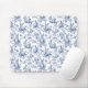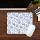 Spring chinoiserie style mousepad featuring a floral pattern with bunnies in blue and white colors.