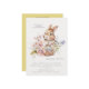 Capturing the essence of the season, our invitation features a charming watercolor illustration of a bunny clutching a blooming bouquet of spring flowers. The delicate pink hues, soft yellows and spring green, combine with the intricate apricot and peach floral details, adding a touch of springtime magic, while the gentle bunny infuses a sense of joy and nurturance.