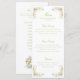 The menu is adorned with a stunning borders of hand-painted watercolor flowers in soft hues of peach and green. These delicate blooms gracefully encircle the card, creating an inviting and serene atmosphere that captures the beauty of a blooming garden.