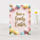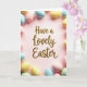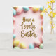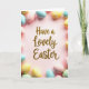 This card features a soft blush-pink background with a warm, golden-brown message centered in the middle, written in flowing lettering that feels like a gentle note between friends 🌷. The text sits as the main focal point, with generous spacing around it so the words breathe and draw your eye first. Around the edges, a ring of decorated egg-shaped ovals forms a loose frame, like little tokens placed thoughtfully to surround the message. Each oval is colored in light pastels—pale blue, soft pink, sunny yellow, and fresh green—with small white patterns such as dots, stripes, and simple abstract marks that add a sweet, affectionate tone 🐇. The lighting looks diffused and even, keeping everything soft without sharp shadows and giving the colors a calm, airy look. Subtle shading beneath the ovals adds a slight raised effect, as if the eggs are resting gently on the surface. The message appears centered and slightly larger than the surrounding elements, while the ovals cluster along the perimeter in a balanced, airy border. The white patterns repeat across the pastel eggs, and faint shadows sit just under each oval against the pink field.