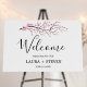 This Elegant Spring Cherry Blossom Wedding Welcome sign foam board is perfect for a modern wedding. The romantic minimalist design features lovely and elegant black typography on a white background with a leaves Greenery and simple look. Customize the sign with the name of the bride and groom, and the date of the wedding.