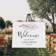 This Elegant Spring Cherry Blossom Wedding Welcome sign foam board is perfect for a modern wedding. The romantic minimalist design features lovely and elegant black typography on a white background with a leaves Greenery and simple look. Customize the sign with the name of the bride and groom, and the date of the wedding.
