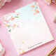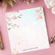Embrace the ethereal beauty of spring with this personalized notepad. Delicate branches adorned with pink and white cherry blossoms frame the top of the design, creating a graceful and elegant look. The soft, pastel background enhances the floral motif. Customize this notepad with your own text. Perfect for notes, reminders, or sharing a touch of springtime beauty.