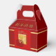 Red Ox paper-cut on Asian painting with greeting in English in front (gold lettering and drop shadow not customizable) + Chinese greeting. Design on Gable favor box. You can easily change background color by clicking the customize button. Available in other styles of favor boxes (cube, tent, take-out). Matching gift bag, greeting card, postcard and other craft products. Perfect for Chinese New Year of The Ox 2021.