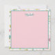 This cute note card features a pretty floral pattern in soft shades of pink, teal and yellow. Personalize the monogram with your choice of name and initial.