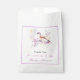 Pretty baby shower favor bag with an adorable bird and purple and yellow flowers. Perfect for a spring or summer baby shower. The words can be changed to suit your own details or requirements
