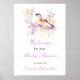Pretty baby shower poster with an adorable bird and purple and yellow flowers. Perfect for a spring or summer baby shower. The words can be changed to suit your own details or requirements