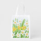 I own a lot of reusable grocery bags, but this one holds its box shape and simply stands up on its own even if there is nothing in it. Its stiffer than your regular reusable bag too, and the material is water resistant. I poured water on the exterior and it didn't penetrate inside to the other side. I'm buying a couple more. Wish I knew how durable these bags were or I would have purchased a few more with my initial order. I also like how it folds and buttons up when not in use, making it easy to put into a handbag or luggage. I haven't used this bag yet, as I purchased it for travel use, like when you're at the airport and need to small sturdy bag to place any airport purchases in, like food, souvenirs etc. I can tell you when you first see this bag, it looks very cheap, but after closer inspection of the material and the seams its a very sturdy reusable bag. I tested it out by putting some really heavy objects inside and I could not observe any stress to the bag at all. Another thing I like about it, is the fact the medium size that this is makes it easy to just carry it in your hand without the bottom of the bag scraping the ground, like most other bags do when you're short. That alone, deserves 5 stars. I just wish there were more colors to choose from! The PDX Airport Carpet printing looks just like the photo, and using this bag during travel might be a conversation piece when/if a native from Oregon happens to see it.
