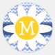 Spring Daisy; Blue Chevron Pattern Classic Round Sticker