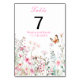 Spring Deep Pink Butterfly Floral Wedding Table Number