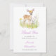Pretty baby shower thank you card with an adorable deer and purple and yellow flowers. Perfect for a spring or summer baby shower. The words can be changed to suit your own details or requirements