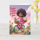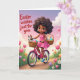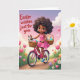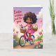 Designed with a sunny spring scene, a young girl with dark curls and a gentle smile pedals a bright pink bicycle down a warm, golden path, her pink dress and blue sneakers adding a sweet, friendly touch. Two woven baskets on the bike are filled with long-eared bunnies 🐰 and pastel, speckled egg shapes, like she’s delivering little surprises to someone special. Her position is slightly off-center, so the bike seems to glide forward, and her relaxed posture suggests she’s headed toward a friend she can’t wait to see. In the upper left, the phrase “Easter wishes just for you” appears in flowing lettering, set in a soft, dark tone that stands out against the light sky. The sky fades from honey-gold near the horizon to lavender and pale blue above, with fluffy clouds drifting by like quiet company. Along the edges of the path, green grass is dotted with tulips in pink, yellow, and purple 🌷, plus small white daisies that add a gentle, romantic garden feel. A fawn-colored little animal peeks from the front basket with wide eyes, as if sharing a secret smile with the girl. The bicycle’s pink frame, the tan baskets, and the pastel eggs are outlined with soft shading against the glowing morning backdrop.
