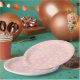 Pink and yellow Spring dots paper plates. Design can be transferred to matching paper napkins.