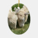 Spring/Easter: Two lambs same grass, One by fence Ceramic Ornament