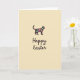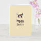 This design shows a sleek cat silhouette in a deep cocoa-brown tone centered on a pale cream background, giving the scene lots of open space to breathe. Across the cat’s body, soft pastel polka dots in pink, yellow, teal, and light blue scatter like confetti, adding a gentle, friendly energy 🌷. A tiny white eye and a small curved smile make the cat look like it’s sharing a quiet, affectionate glance with the viewer. Its tail arches above its back in a smooth curve, as if it’s pausing mid-step to linger near someone it likes. Beneath the cat, a flowing line of lettering stretches across the lower area in a dark purple shade, offering a seasonal greeting. The text sits centered under the figure, with enough spacing that it feels calm and easy to read, while the cat remains the main focus 🐰. The cream backdrop stays plain and uncluttered, with the dotted cat and the deep-purple lettering standing out clearly. The polka dots vary slightly in size and are spread evenly from the cat’s shoulders down to its back and tail.