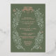 Hand-drawn Spring fleur de lis style elegant framed wedding invitation with styled spring blooms, leaves, tendrils and little butterflies. In sage green, personalize with your own wedding details and monogram initials up the top. Other colors and matching items are available or can be created by request. © Original hand drawing and design by Sarah Trett for www.mylittleedenweddings.com on Zazzle.