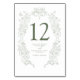 Hand-drawn Spring fleur de lis style elegant framed wedding number with styled spring blooms, leaves, tendrils and little butterflies. In simple classic sage green and white, personalize with your own names and monogram initials and table numbers. Each number required has to be added to the cart one at a time. Other colors and matching items are available or can be created by request. © Original hand drawing and design by Sarah Trett for www.mylittleedenweddings.com on Zazzle.