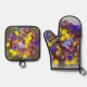 Brighten your kitchen with this lively set! One pot holder and one oven mitt in bright spring colors. Photo of yellow, purple and magenta flowers. Available separately.