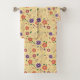 Pretty spring floral bath towel set with orange and purple blue little flowers, set on a vanilla color background.