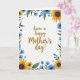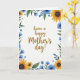 This greeting card features a warm well-wishes message centered in flowing golden-brown lettering, inviting the eye in like a gentle note between close friends. Surrounding the words is a springlike frame of flowers and leaves, where the arrangement feels like it’s leaning in to cradle the message with quiet affection ❤️. Large yellow blossoms with dark, textured centers take the lead, their petals stretching outward like sunlit faces turned toward someone they adore. Between them, smaller blue flowers in soft sky tones and deeper cobalt shades cluster together, adding a calm, tender contrast. Green foliage winds throughout in layered tones, giving the border a lush, living feel, while tiny red star-shaped accents peek out like little sparks of attention. The background stays bright white, keeping everything airy and giving the colors room to breathe 🌼. The text sits in the middle of the page, with the floral border wrapping around the edges in yellows, blues, greens, and small touches of red.
