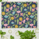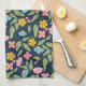 Spring Floral Pattern on Dark Blue Kitchen Towel