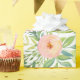 Watercolor springtime floral pattern wrapping paper in accents of peach and coral with abundant greenery.