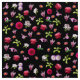 This is a unique print that is an assortment of photographs of flowers against a black background. The flowers are Dogwood, Apple, Rose, Magnolia, & Dahlia. These flowers make a pretty pattern that is full of pink, red, purple, green, and white.