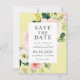 The lovely spring floral design has a bouquet of blush pink and off-white watercolor roses with greenery over a pastel yellow background. The colors are soft and convey a sense of happiness. The back of the card has a photo template for personalizing with your photo. Personalize the front of the card with your names, wedding date and the city where you will be married.