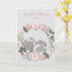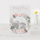 On the front of this all occasion greeting card is a cute image of two little bunny rabbits snuggled together inside a pastel pink floral wreath. At the top of the card are two customizable text fields in matching dusty pink. The inside of the card has two more text fields for you to customize, plus a matching floral border at the bottom. Very delicate and pretty, and you can easily adapt this card for any use.