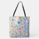 Beautiful pastel colored Easter eggs and Spring flowers are scattered about in a whimsical pattern. A banner up the side has an easy to use template for you to put your name on the bag. Design is on both sides. This pretty bag is perfect for Spring and Summer to run errands, go to the outdoor market or use as a weekend overnight bag.