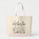 Floral Tote Bag with spring colors, hand drawn illustration art. Personalize text.