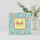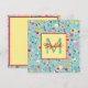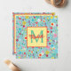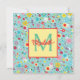 This cute monogrammed note card features a pattern of pink, red and yellow flowers on a pretty aqua blue background. Personalize the monogram with your choice of name and initial.