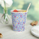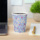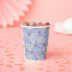 spring flowers on blue background paper cups